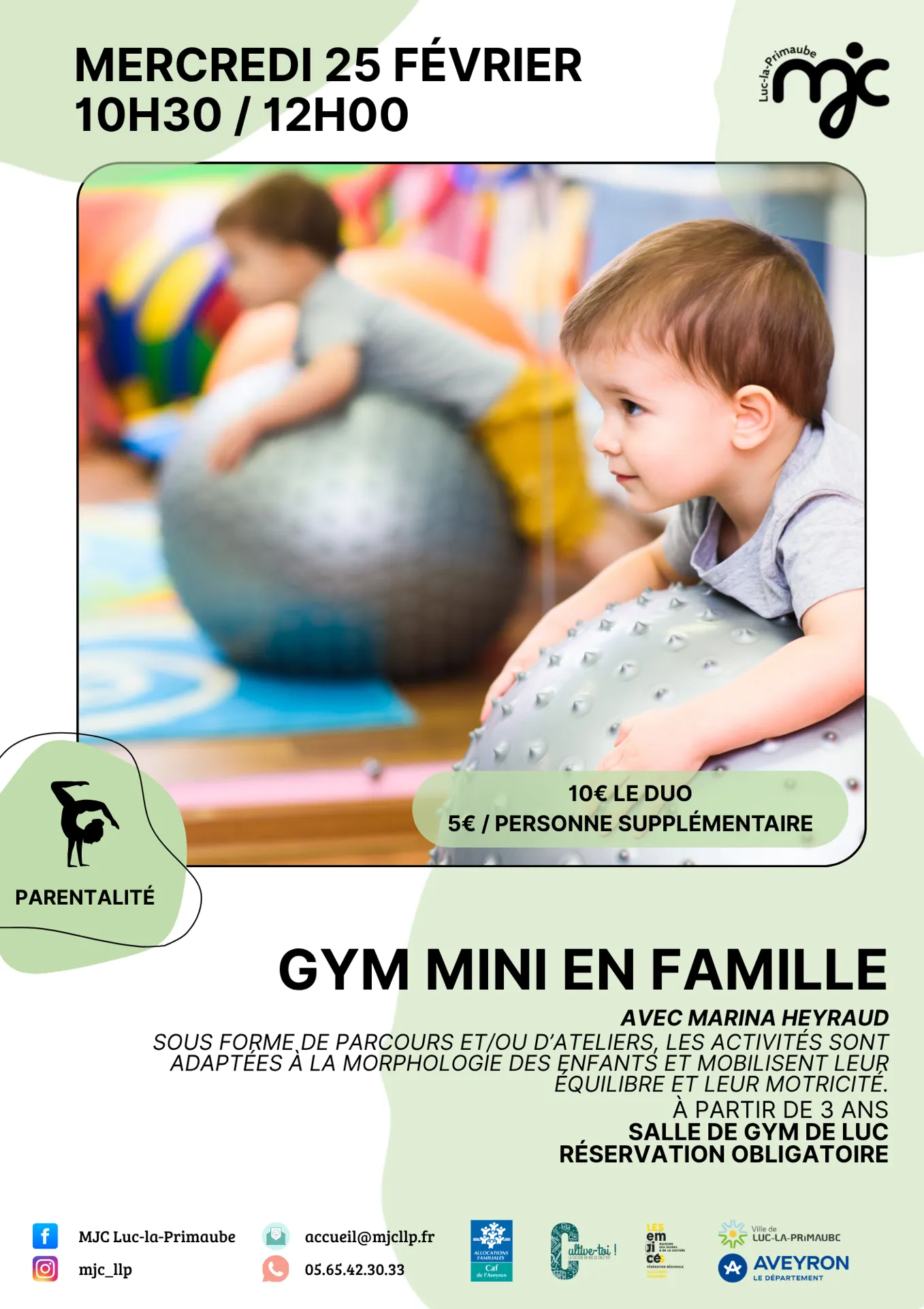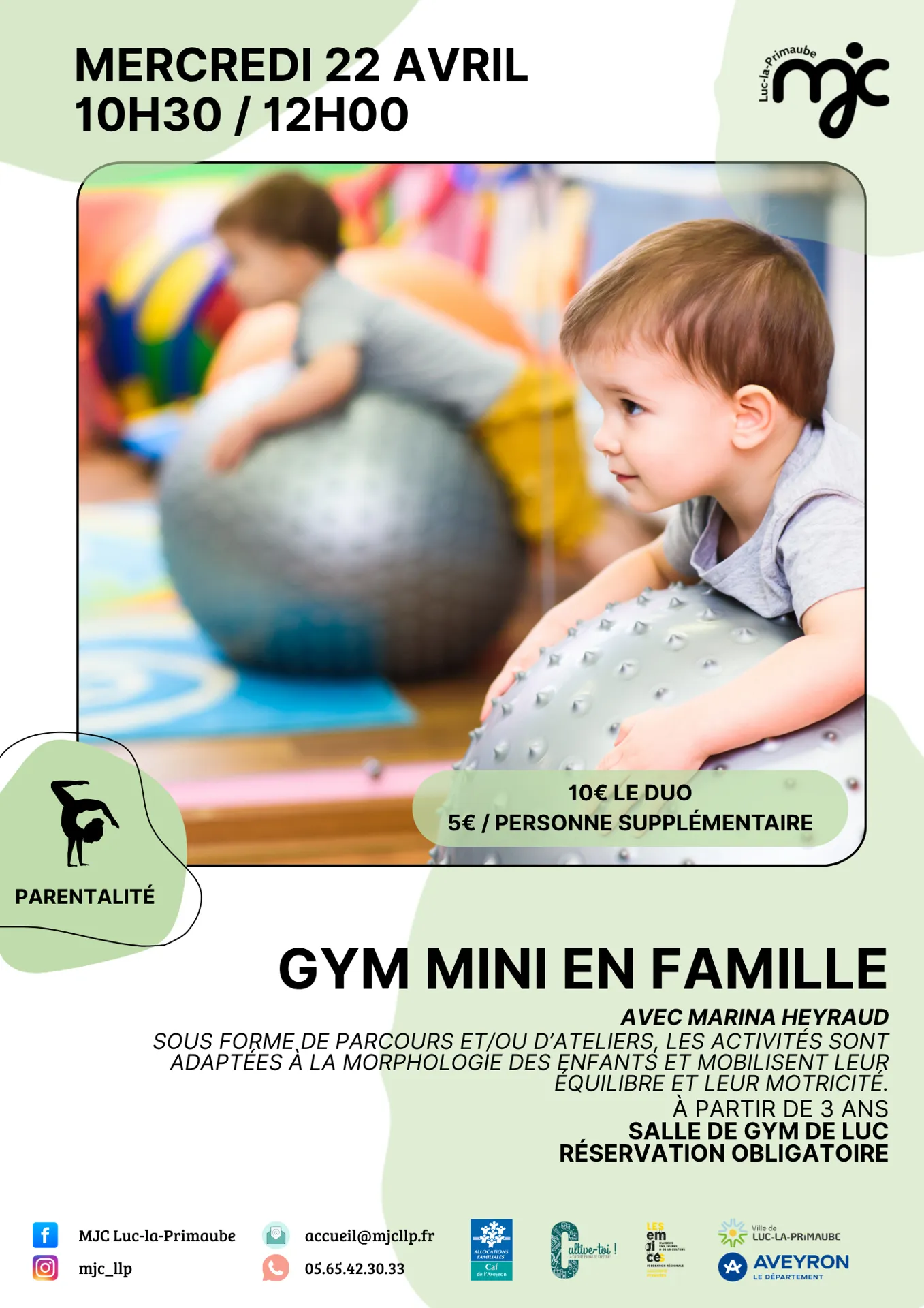 DIM. 4 JANV; 25 FEV; 22 AVRIL – 10h30/12h00 – salle de gym de Luc